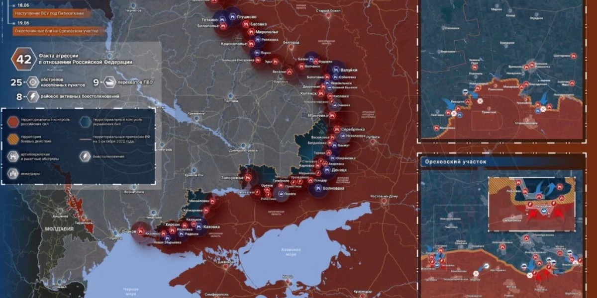 Карта боевых действий на Украине, к утру 21 июня 2023г., от РИА Новости. Карта специальной военной операции.
