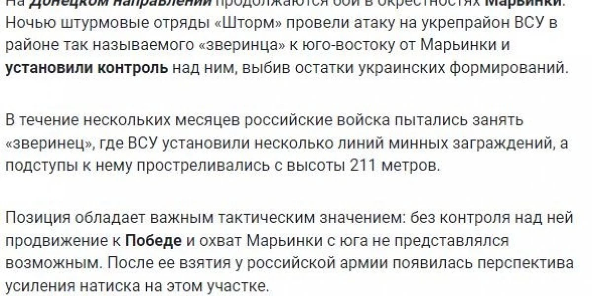 Донецкое направление: на Авдеевском участке без серьезных изменений за сутки. В Марьинке российские бойцы продолжают выдавливать ВСУ с окраин.