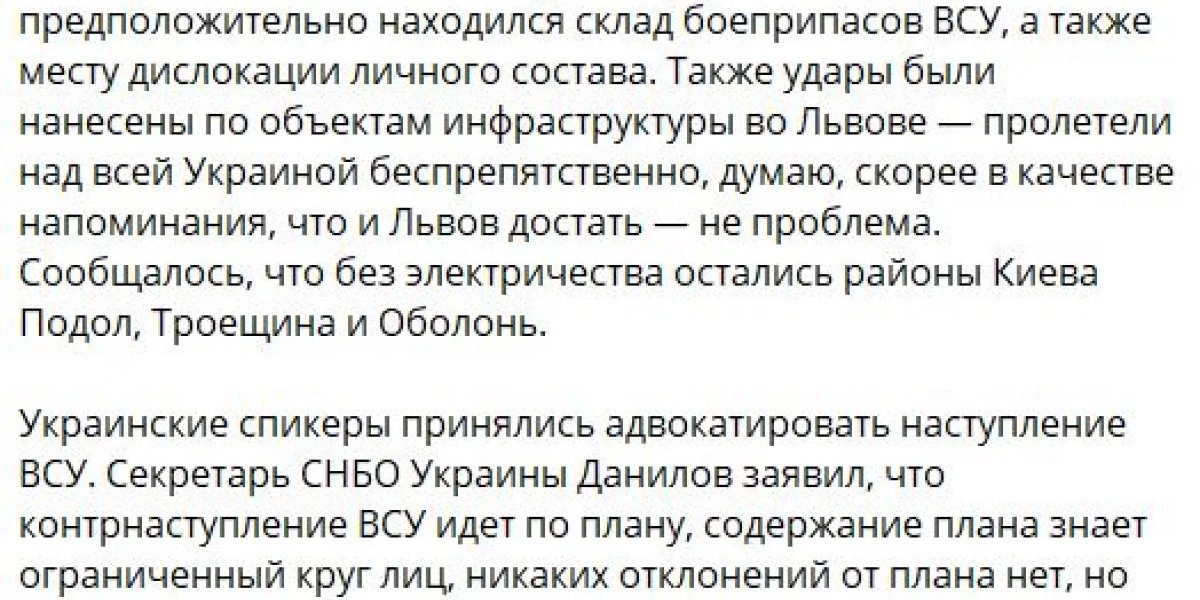 “С КАЖДЫМ ДНЕМ СТАНОВИТСЯ ЯСНО, ЧТО УКРАИНСКОЕ КОНТРНАСТУПЛЕНИЕ НЕ ДОСТИГАЕТ НИ ОДНОЙ ИЗ ПЕРВОНАЧАЛЬНО ЗАЯВЛЕННЫХ ЦЕЛЕЙ”, – СЧИТАЕТ ОН.