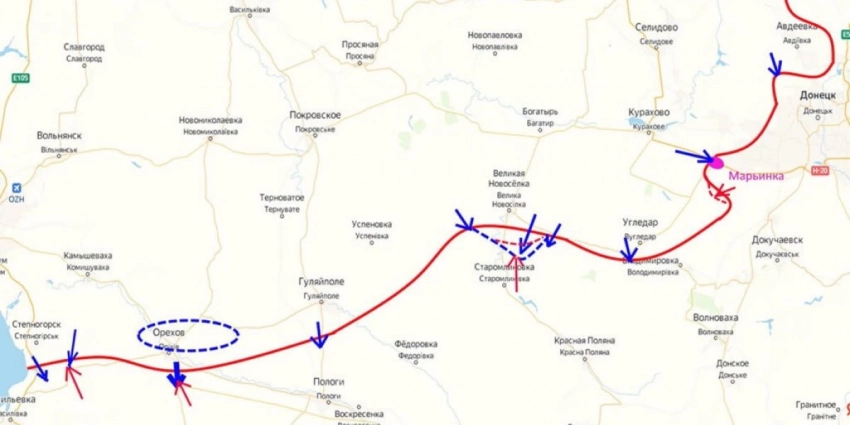 - Оранжевым отмечено начальная позиция на Донбассе.