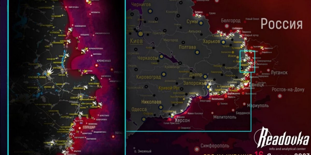 Новая, обновленная карта боевых действий на Украине 17 января 2023 года. Актуальные данные на сегодняшний день