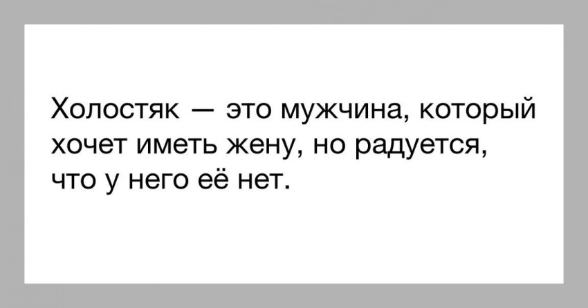 Холостяк — человек, который неудачно охотился на женщину, но удачно скрывался, когда сам был в роли дичи.