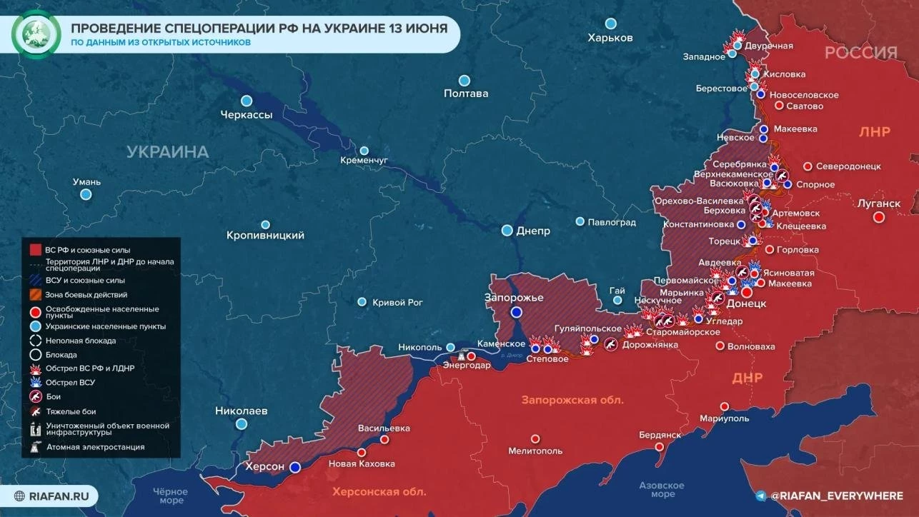 Карта боевых действий на Украине 13 июня июня: что происходит в зоне СВО