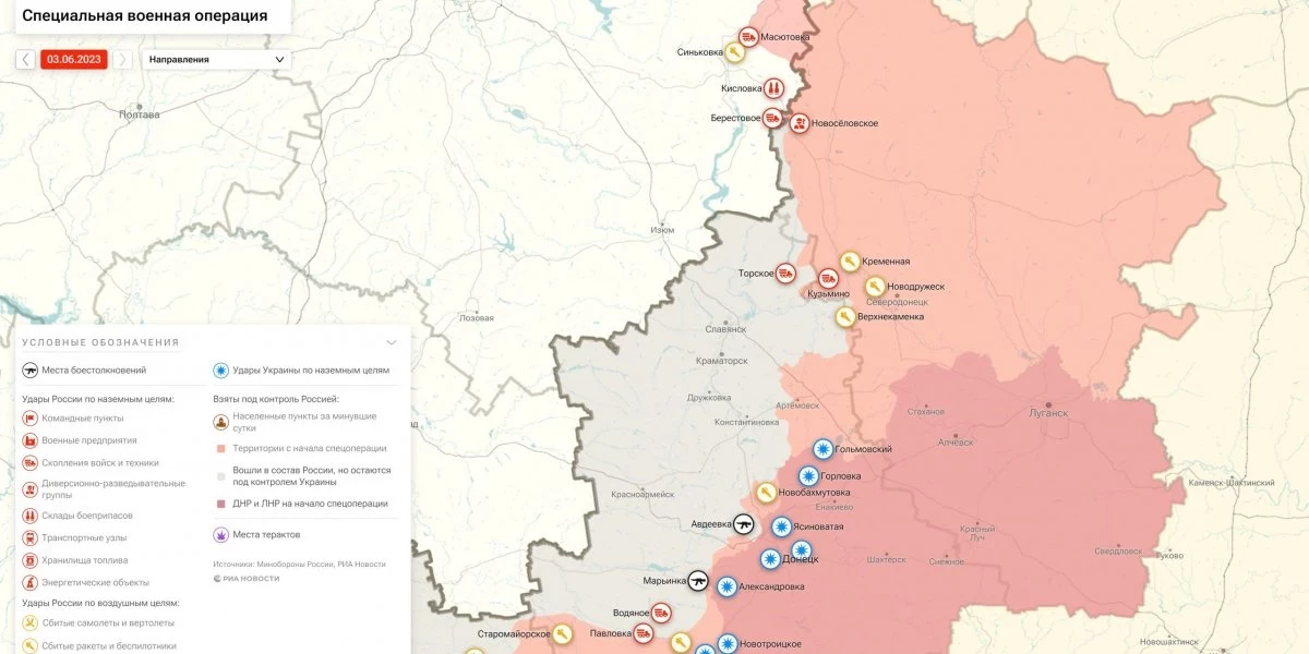 Карта боевых действий 3 июня 2023 на Украине — последние новости фронта Донбасса сегодня, обзор событий. Итоги военной спецоперации России на Украине сейчас 03.06.2023