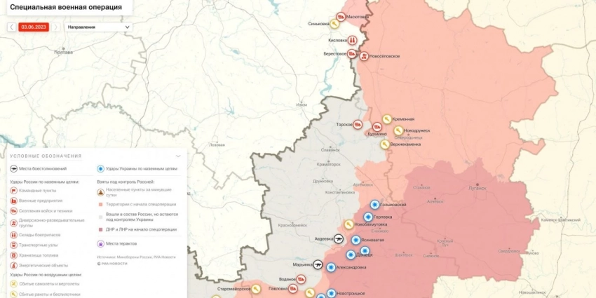Карта военных действий на Донбассе сегодня 3 июня: граница фронта, места боёв и обстрелов на сегодня 03.06.2023, обстановка в ЛНР и ДНР