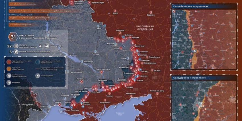- Свежая карта боевых действий на Украине на сегодня 28.11.2022. Спецоперация РФ на Украине, день 278-й