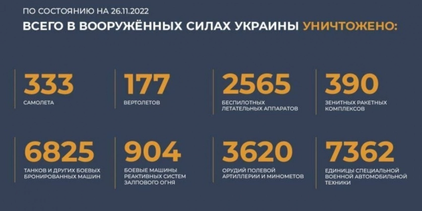 - Брифинг Министерства обороны Российской Федерации о ходе проведения специальной военной операции на территории Украины по состоянию на 28 ноября 2022 года