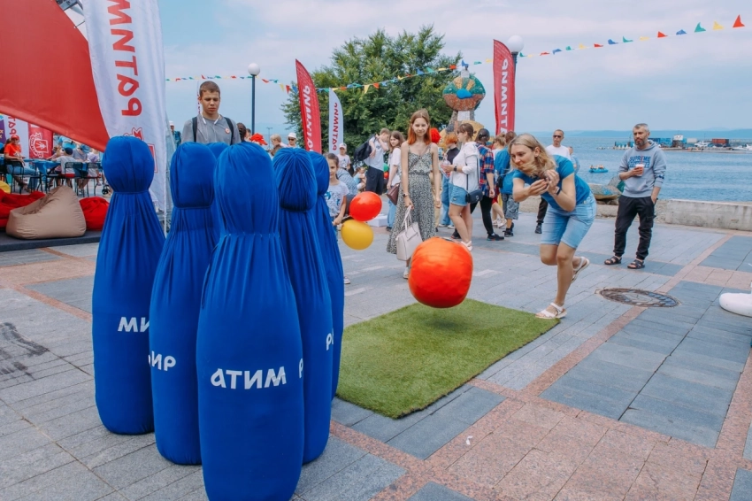 Целая прохладная лаундж-зона на радость празднующим владивостокцам расположилась на берегу Японского моря. Гости праздника смогли не только отдохнуть от палящего солнца на ярких пуфах под шатром, но и поучаствовать в разных интерактивах, приготовленных компанией “Ратимир”. Тематика площадки стала спортивной не случайно — компания поддерживает здоровый образ жизни, производит экологически чистую и вкусную продукцию и заботится о здоровье дальневосточников.