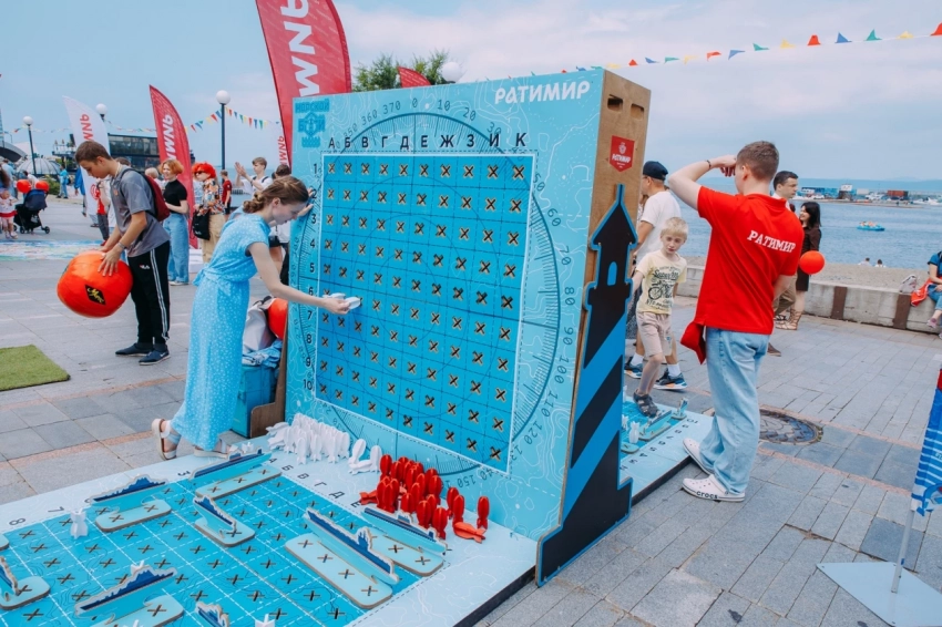 В течение работы площадки дети и родители могли сыграть в Дженгу, Морской бой, боулинг и фирменную игру-бродилку от “Ратимир” — и всё впечатляющих огромных размеров. Все желающие также могли пофотографироваться на фотозонах и сразу получить распечатанные карточки в приморском ярком стиле. А для детишек работала зона с временными “татуировками” и раскрасками с Ратимишкой.