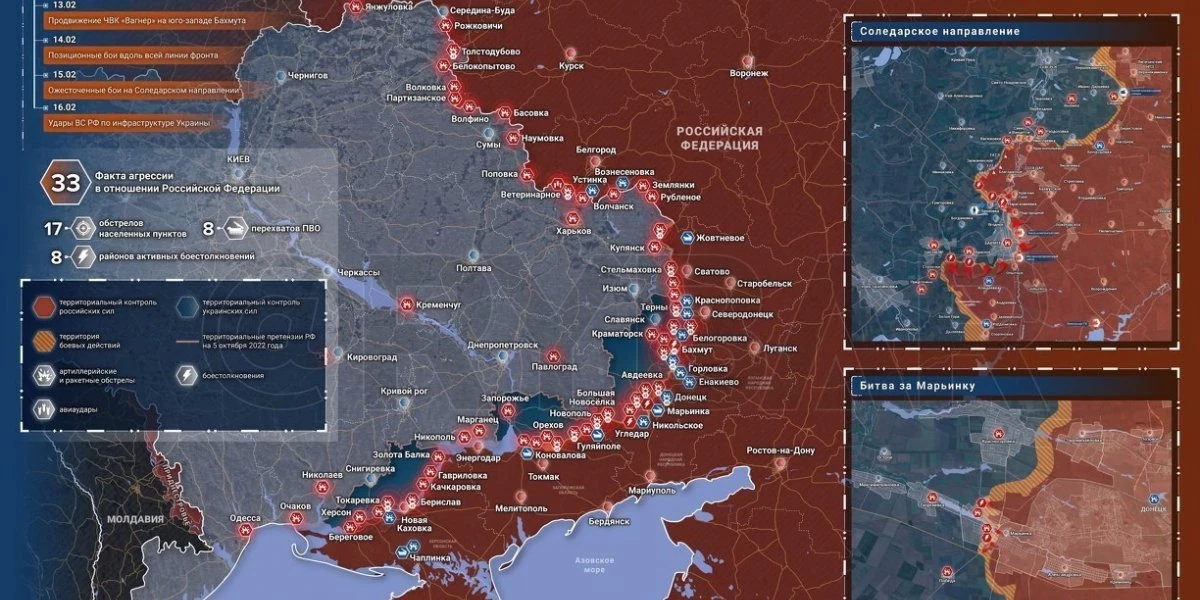 Карта Украины боевых действий сегодня 17 февраля 2023