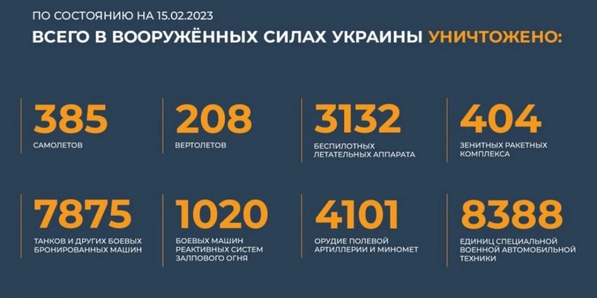 Потери Украины на 17 февраля 2023 в ходе спецоперации Z, последние новости. Ликвидированы нацисты. Потери ВСУ на донецком направлении за сутки составили до 190 военных