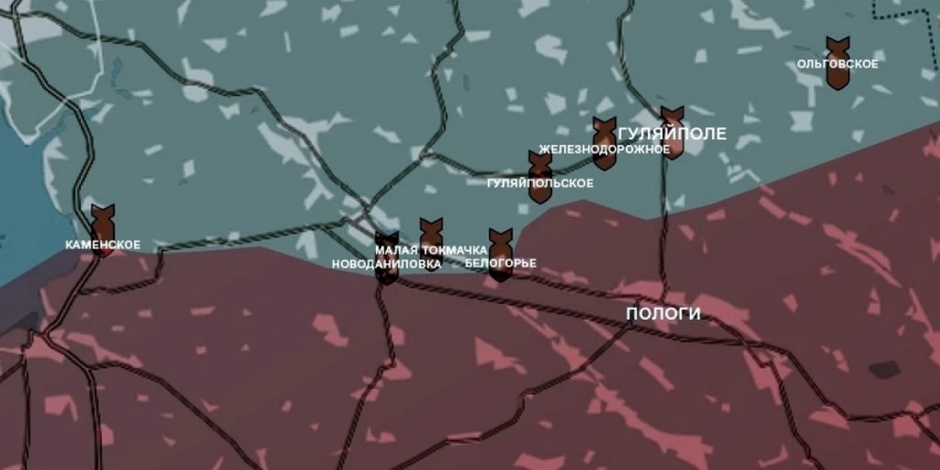На запорожском направлении Вооружённые Силы РФ вели обстрелы Каменского, Новоданиловки, Малой Токмачки, Белогорья, Гуляйпольского, Железнодорожного, Гуляйполя и Ольговского.