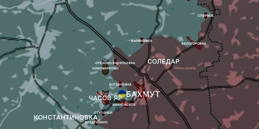 К юго-западу от Бахмута российские войска при поддержке артиллерии и авиации атаковали в направлении Часова Яра, а ЧВК «Вагнер» вблизи Ивановского, а также в южных, западных и северных частях самого города. Также подразделения Вооружённых Сил РФ пытались продвинуться со стороны донецкой Белогоровки. Под обстрелами украинские позиции в Александро-Шультине, Предтечине, Ступочках, Богдановке, Новомаркове, Орехово-Васильевке, Васюковке, Спорном и Верхнекаменском.