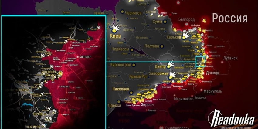 - Новая карта боевых действий, новости Украины сегодня, 11 мая 2023 г.. Сводка боевых действий на Украине, Бои за Артёмовск (Бахмут) карта СВО: