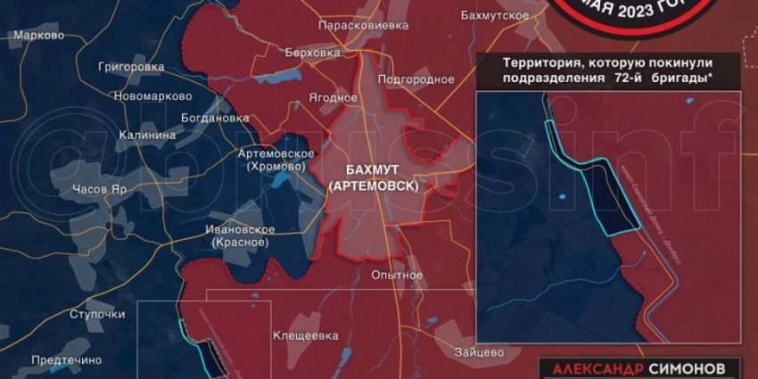 По её словам, причина в несогласованности действий. У «Вагнеров» был прорыв в ином месте и они отошли, а 72-я бригада об этом не знала. В итоге ВСУ ударили туда, где стояла артиллерия 72-й бригады без должного прикрытия штурмовиков.