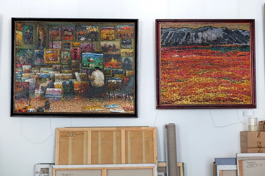 Картины Кирилла Шебеко в мастерской. Фото: филиал Третьяковской галереи во Владивостоке