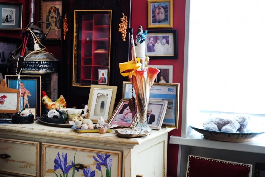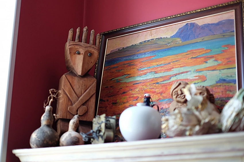 “Я почти все берегу, почти все оставила, — рассказала Мария о вещах в мастерской, — почти вся мебель тут дедушкина: его кресло-качалка, шкафы, диван. Многое я реставрировала своими руками: на мебели изобразила цветы, диван перетянула, стягивала пружины. Но, к сожалению, историю многих вещей я не знаю или не помню. Например, вот этот сэвэн — подарок дедушке от друзей. У него было много знакомых среди коренных народностей: нанайцев, удэгейцев. Возможно, фигурку ему подарил Иван Дункай — советский и российский удэгейский художник, живописец и график. Но это неточно, я могла перепутать за давностью времени, хотя, мне кажется, дедушка так говорил”.