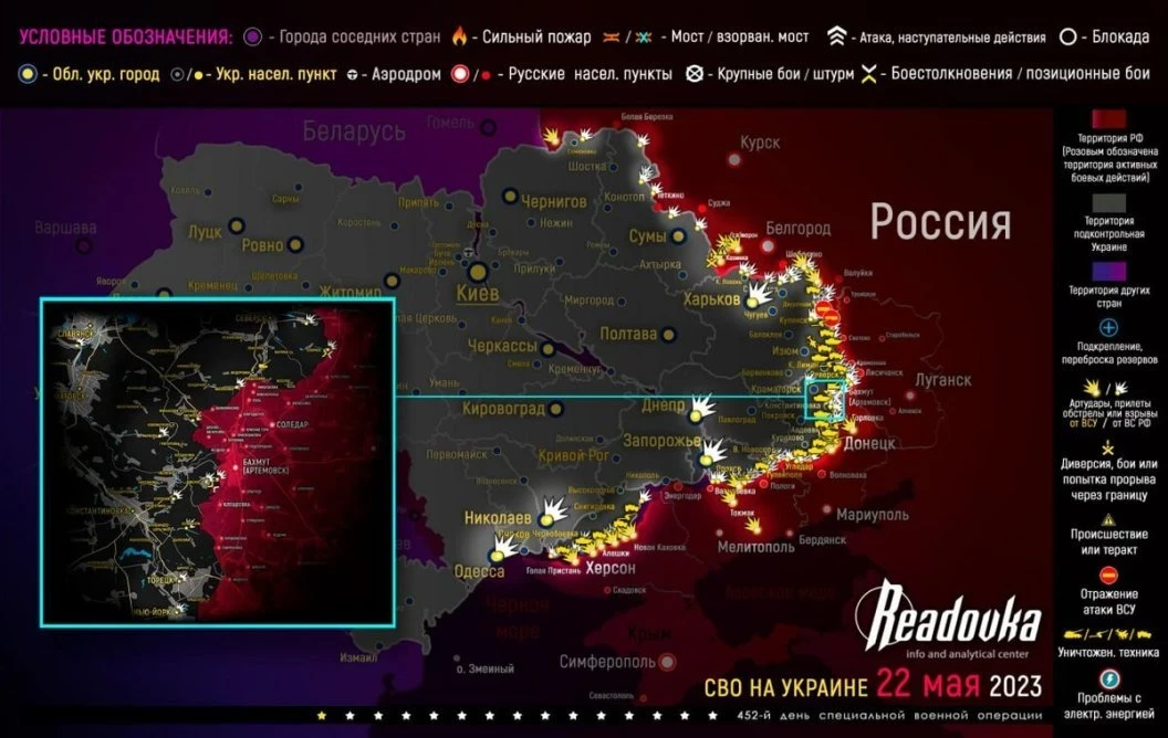 Украина сегодня 23 мая 2023, последние новости: ВС РФ ускоряются в продвижении. Спецоперация (СВО) России сегодня, карта боевых действий