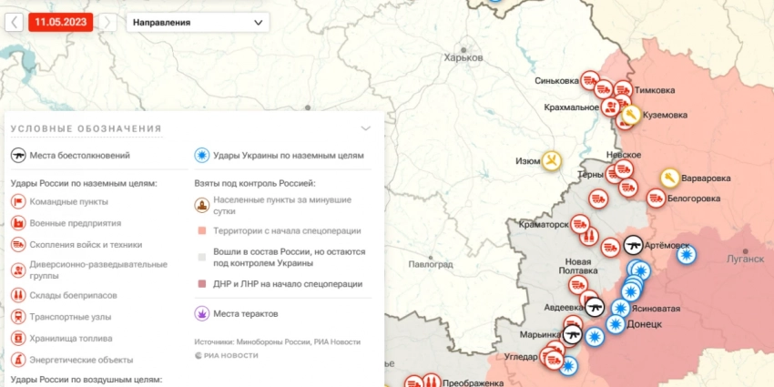 Новая карта военных действий, новости спецоперации России на Украине 11.05.2023. СВО сводки с фронта, Донбасс, ЛНР, ДНР. Карта Украины сегодня 11 мая 2023