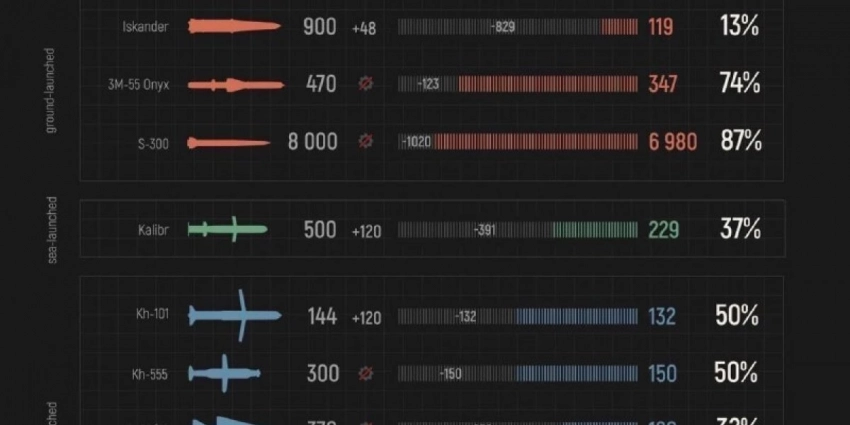 Украина, военная операция сегодня 23 ноября 2022: Минобороны Украины показали инфографику с данными, сколько ракет якобы осталось у России