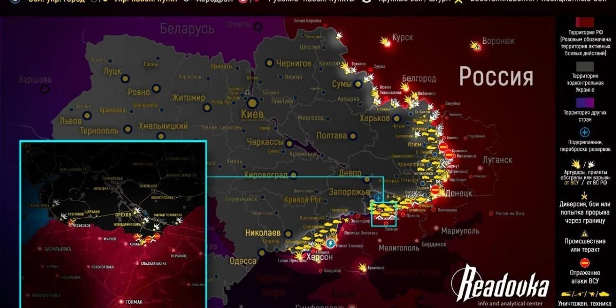 На Ореховском участке у ВСУ есть небольшие успехи, противник занял несколько наших позиций, к концу дня враг снова начал масштабные атаки. Тем временем боевики стягивают резервы к Великой Новоселовке и Угледару. А также атаковали в направлении Нескучного.