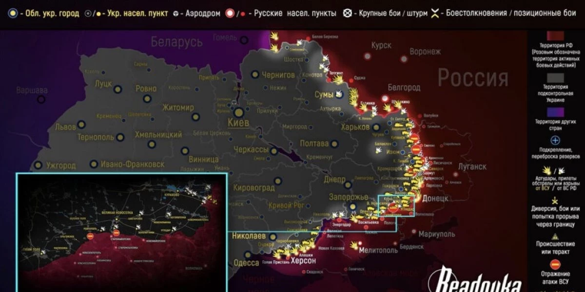 Карта боевых действий на Украине сегодня, 5 июля 2023г. Карта от readovka.news