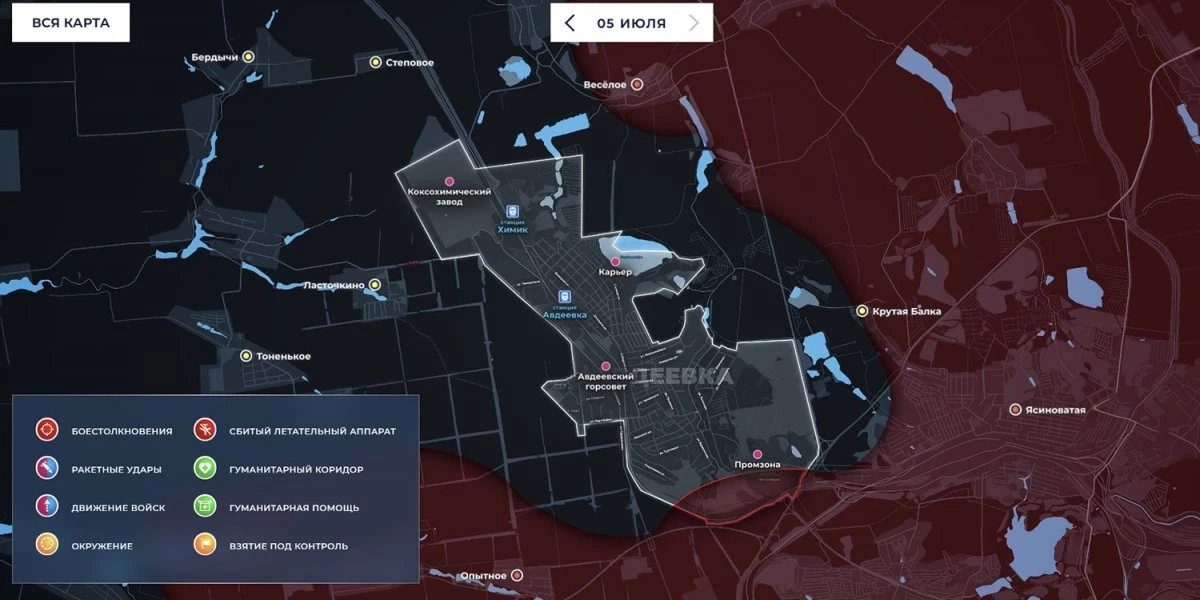 Карта боевых действий на Украине, обстановка 5 июля 2023 года, Бои за Авдеевку
