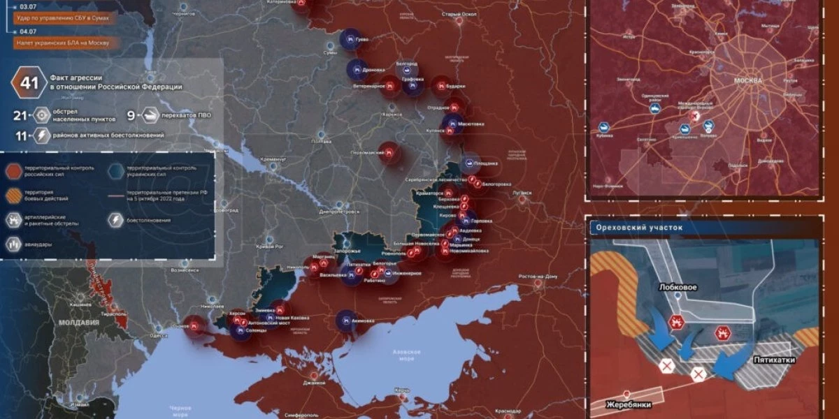 Карта боевых действий на Украине сегодня, Общая обстановка 5 июля 2023 года от Mash