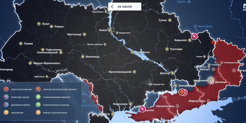 Карта боевых действий на Украине, 5 июля 2023г., от РИА Новости