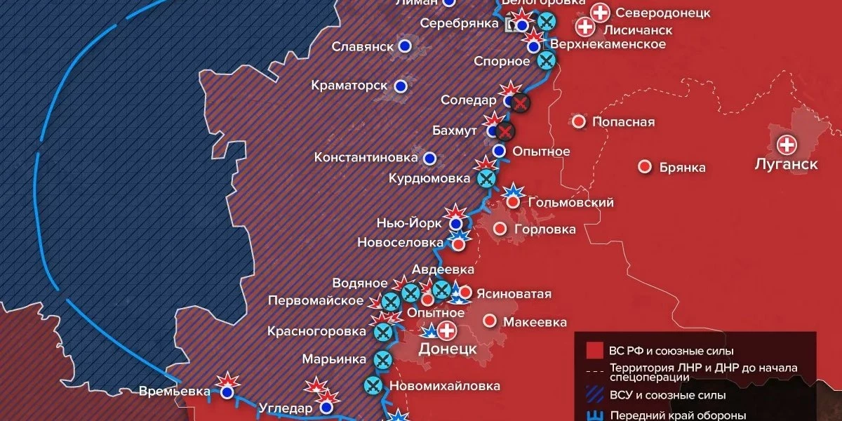 Союзные силы проводят атаки в районах Новомихайловки, Первомайского и Водяного, а также Спорного, Верхнекаменского и Белогоровки. По Марьинке и Красногоровке бьет артиллерия, участок трассы М-04 перехвачен ВС РФ.