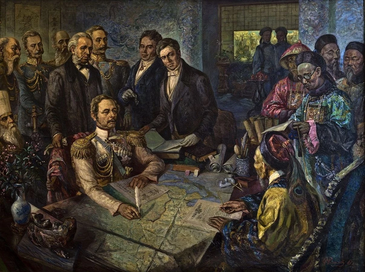 Репродукция картины Василия Романова “Айгунский договор”. Фото: из открытых источников