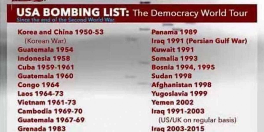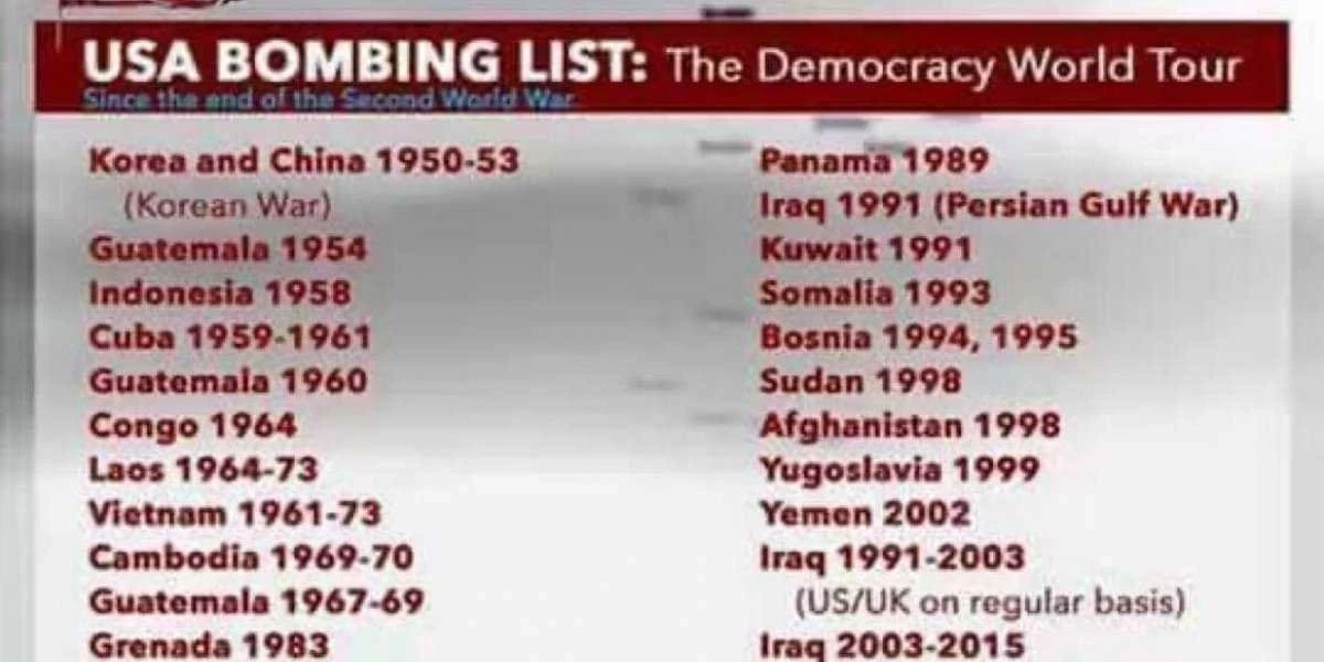 Кроме того, они приложили картинку, в которой наглядно все видно. На ней перечислены страны, которые пострадали от рук США уже после Второй мировой войны.