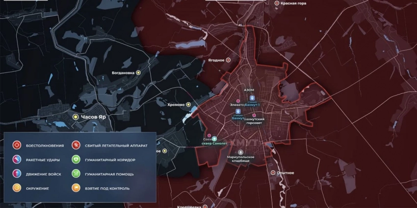 Карта боевых действий на Украине сегодня, обстановка к утру 6 июля 2023 года от Mash. Бои на Артёмовском направлении