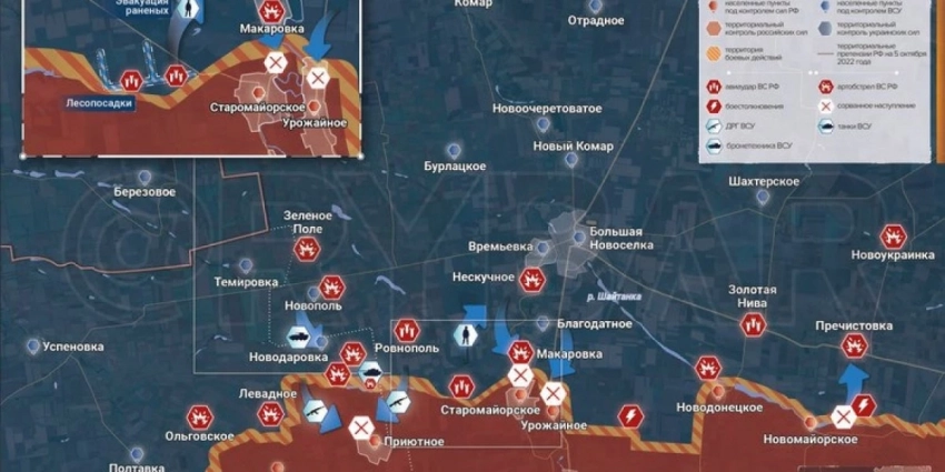 Сватово-Кременное направление: российская армия продолжает продвигаться в районе Новоселовского, уже зачищено депо, также под контролем промзона у железной дороги. Тем временем идут ожесточенные бои в лесах под Кременной и в районе Белогоровки.