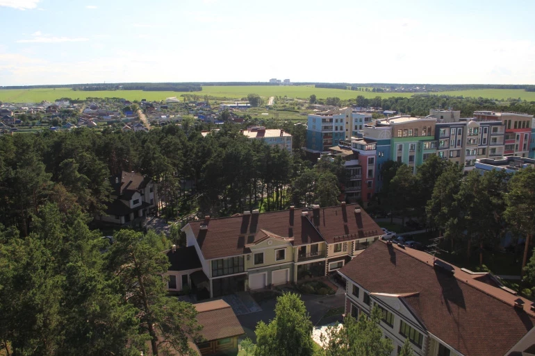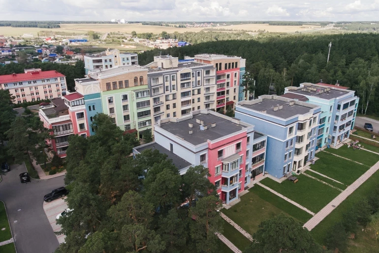 Микрорайон располагается среди сосен в Каштакском бору