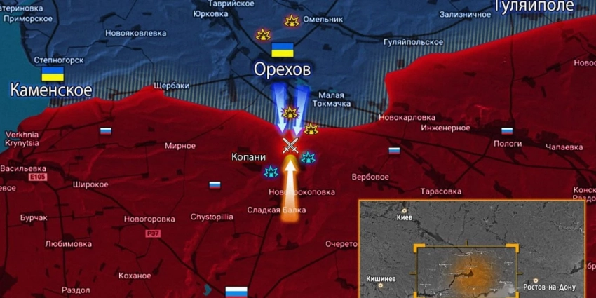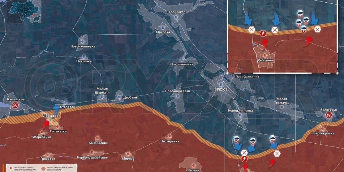 Орехов. Каждый час противник отправляет по 15-20 человек, чтобы снова зацепиться за передовые позиции наших войск. По-прежнему постоянно работает вражеская артиллерия, так что по словам бойцов прилеты случаются едва ли не каждую минуту. ВСУ с помощью беспилотников контролирует пути подвоза/подхода и сразу отправляет туда артиллерийские снаряды.