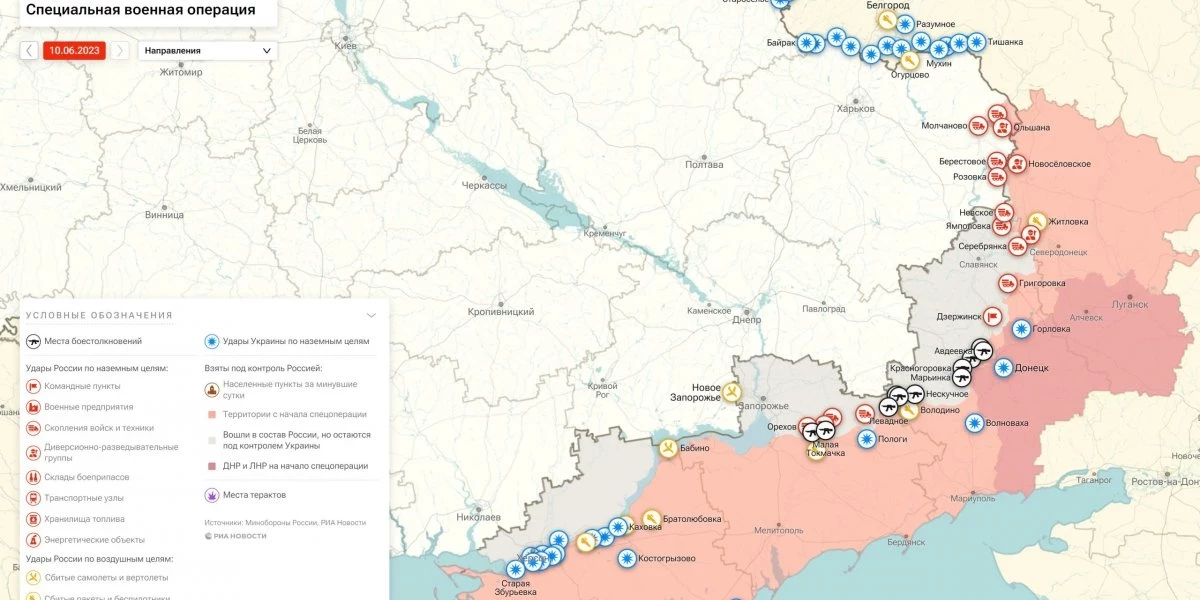 Последние новости о ходе военной спецоперации на Украине на сегодня, 10 июня 2023 года, новая карта боевых действий на Украине в материале «Интересной России».