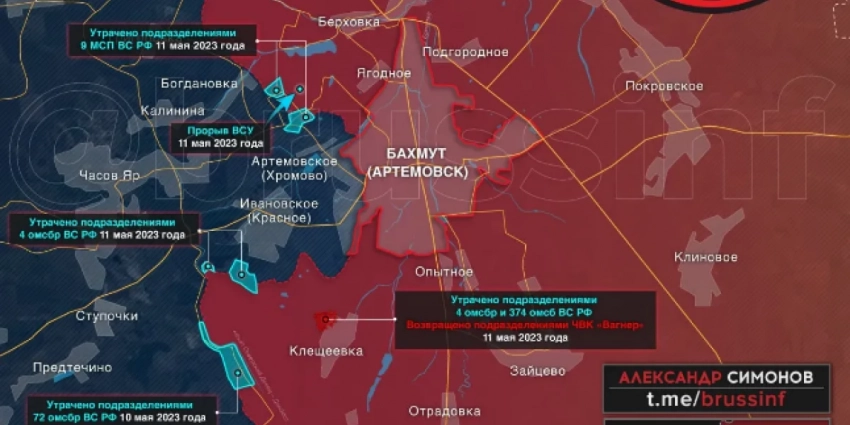 Одной из основных тем инфоповестки 11 мая 2023 года стало объявленное в Telegram контрнаступление ВСУ. Из-за неправильной трактовки первоначальных сообщений военкоров, а также нагнетания паники украинскими инфоборами в Сети появились сообщения не только об успешной разведке боем украинских формирований под Бахмутом, но и активизации на других участках фронта.