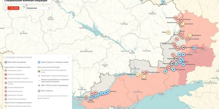 - Специальная военная операция на Украине: Карта военных действий и ситуация на фронтах вечером 11 мая 2023 года