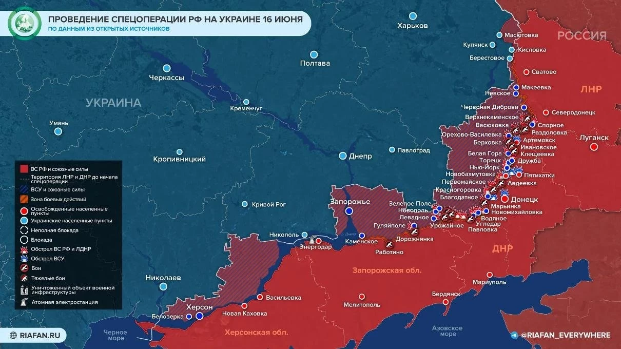 Карта боевых действий на Украине 16 июня июня: что происходит в зоне СВО