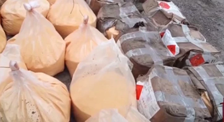 При раскопке обнаружили вещество, напоминающее чешуйчатый тротил. При дальнейшем обследовании был обнаружен ящик с 20 кг тротила и детонатором. Всего росгвардейцы обнаружили 40 мешков со взрывчатым веществом, каждый весом по 25 кг.