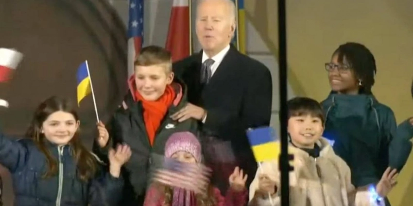 Байден закончил выступление и фотографируется, как заявляется, с украинскими детьми.