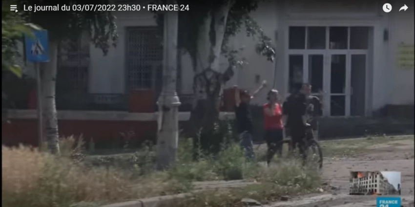 Первый – репортаж Люка Лакруа — корреспондента французского канала France2 из только что освобожденного Лисичанска. Примечательно, что спустя 4 месяца спецоперации французские телеканалы наконец-то стали показывать взгляд на события с другой, «неукраинской», стороны линии фронта. Телевизионная картинка и тон сюжетов разительно изменились.