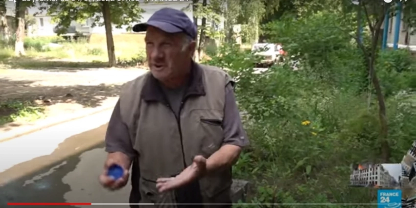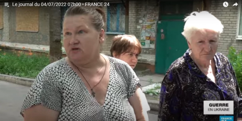 Следующий сюжет телеканала — с другой стороны фронта, из еще не освобожденного Славянска, где корреспонденты France24 вместе с украинскими пожарными доставляли воду жителям города. Но и здесь французский зритель слышит от доведенных до отчаяния жителей Славянска только проклятья в адрес мэра, киевского режима и лично Зеленского. Никакого патриотизма нет и в помине. Люди уже месяц без воды и газа.