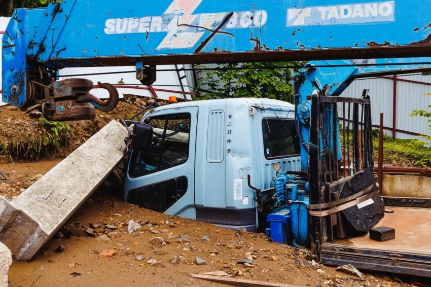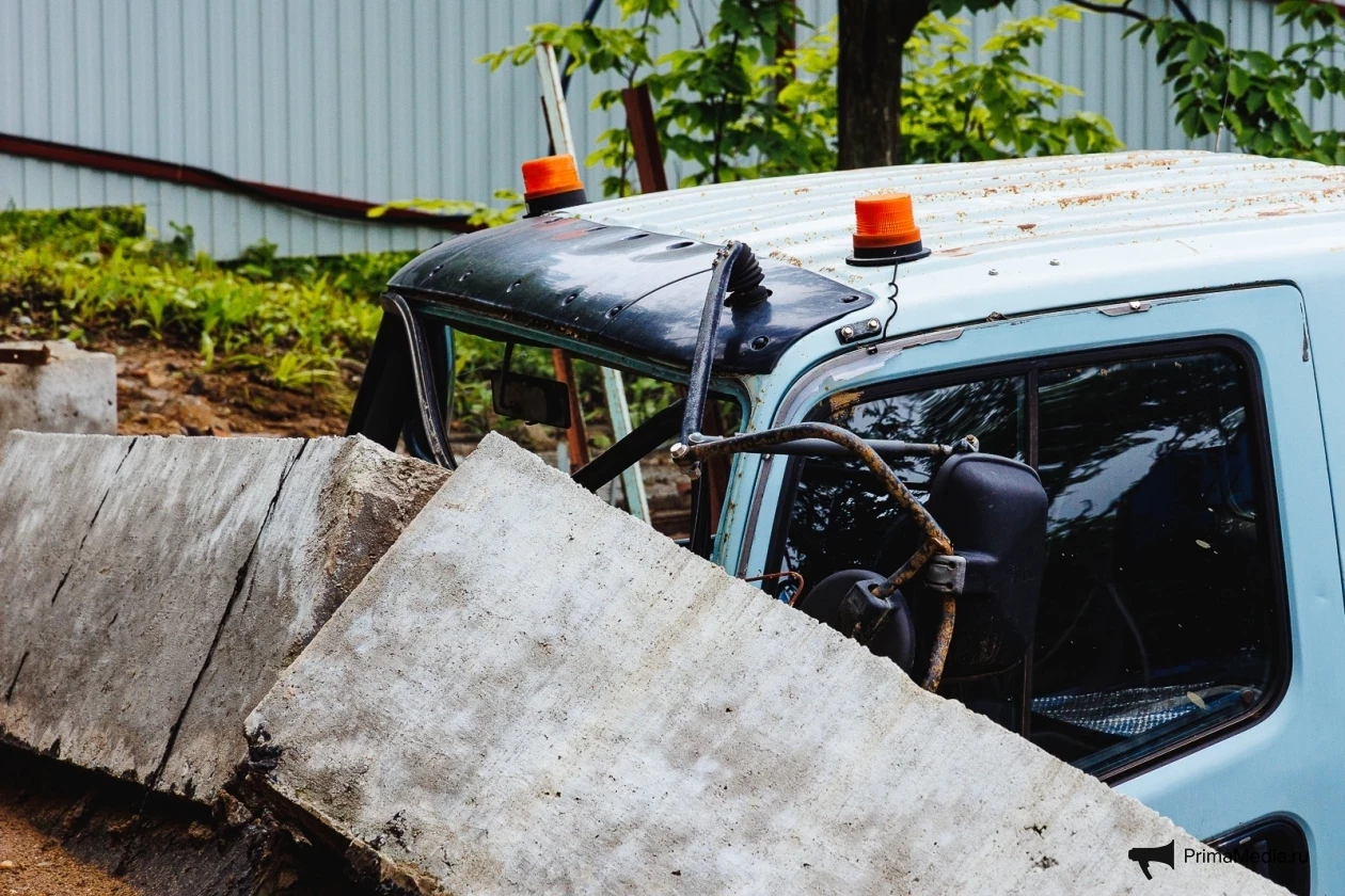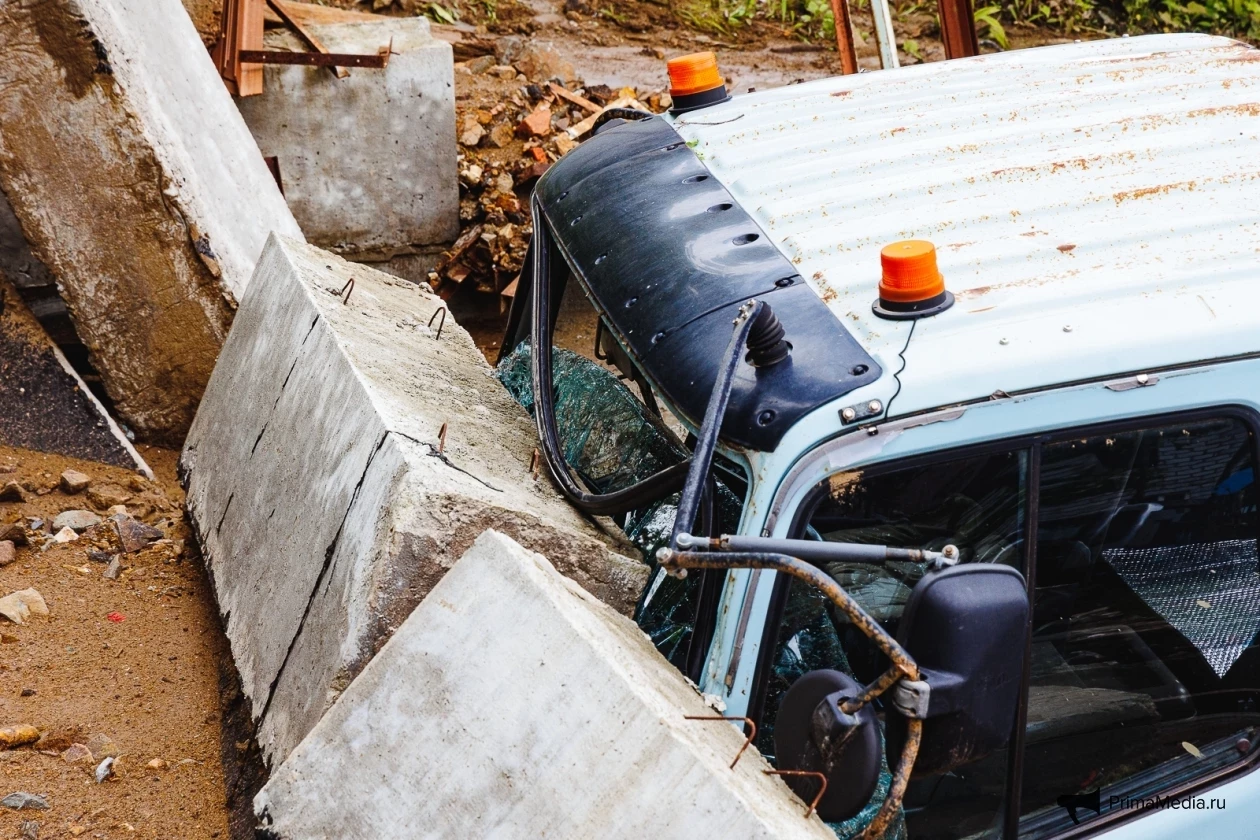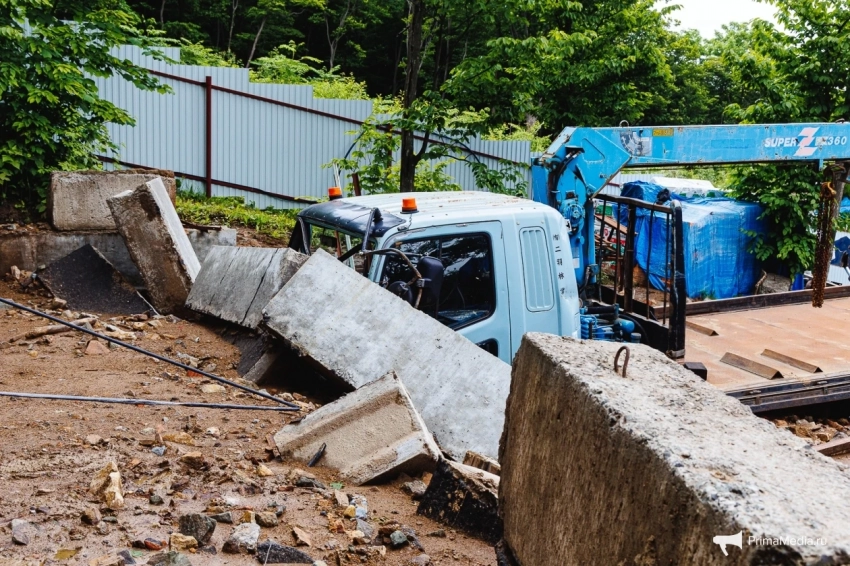 Масса грязи, камней и бетонные плиты уничтожили забор и повредили машины, пострадавших нет