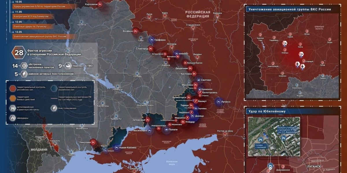 Новые удары 14 мая: карта боевых действий на Украине с городами на сегодня, свежие новости спецоперации (СВО) России 14.05.2023, сводки с фронта