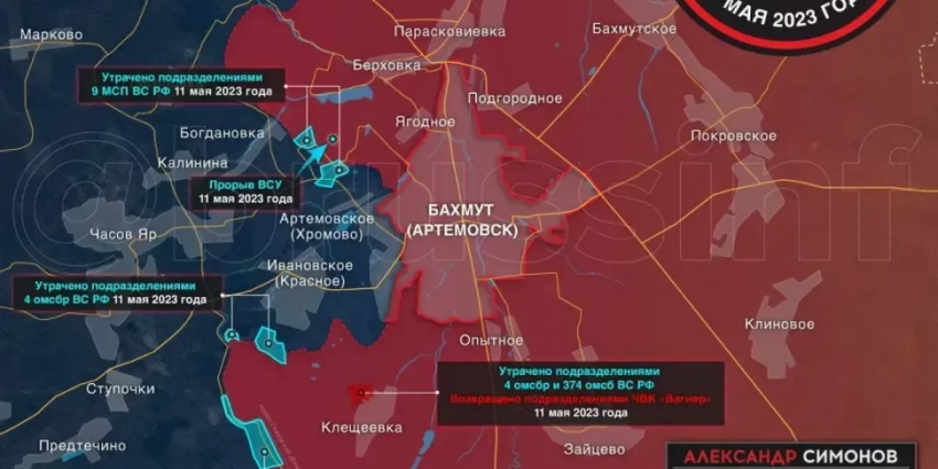 Армия РФ наступает: новая карта боевых действий на Украине 14 мая 2023. Удары ВС РФ