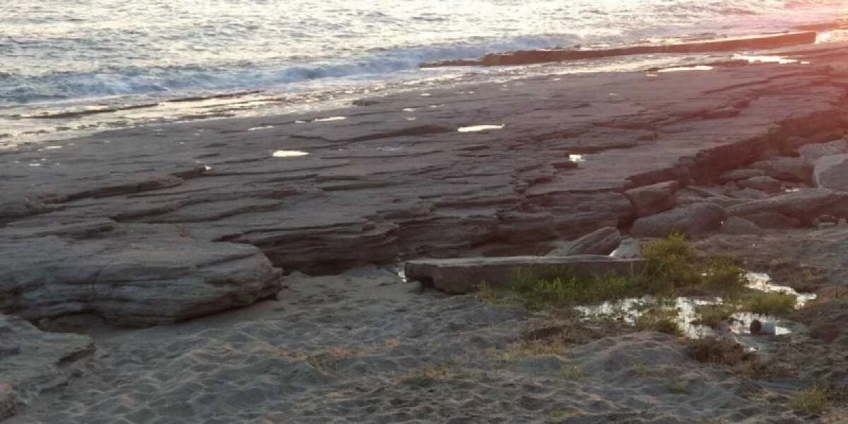 Сразу скажу, плиты покрыты скользкими водорослями, пожилым и детям особенно не рекомендуется там купаться. Разве что на берегу посидеть.