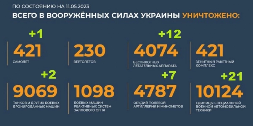 Брифинг Министерства обороны Российской Федерации о ходе проведения специальной военной операции на территории Украины по состоянию на 14 мая 2023 года