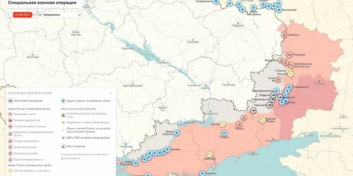 - Карта военной операции на Украине на сегодня, 24 июня 2023 года